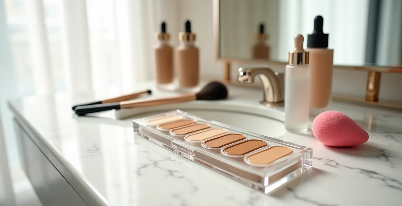Selbst die perfekteste Foundation kann an ihre Grenzen stoßen, wenn es um sehr spezifische Verfärbungen geht, allen voran die gefürchteten Augenringe. Hier kommt der Concealer ins Spiel – aber nicht irgendeiner. Der Versuch, bläuliche oder violette Schatten einfach mit einem hautfarbenen Produkt „zuzukleistern“, führt oft zu einem grauen, fahlen Ergebnis. Der Schlüssel liegt in der gezielten Farbkorrektur, einem Prinzip aus der Farbenlehre.